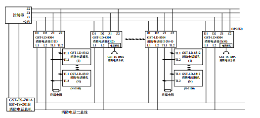 五、海灣GST-LD-8304消防電話接口應(yīng)用方法