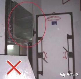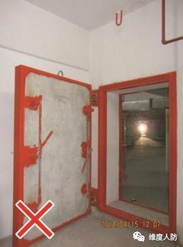 b.空調(diào)管道從防護(hù)門門洞穿過(guò),阻礙防護(hù)門正常開啟(錯(cuò)誤做法):
