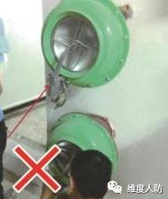 c.防護(hù)閥門采用防爆波閥,不符合要求(錯(cuò)誤做法):