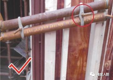 a.門框墻固定模板的對(duì)拉螺栓采用塑料套管安裝(錯(cuò)誤做法):
