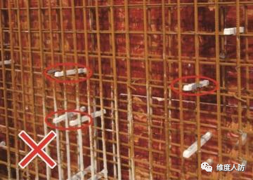 《人民防空工程質(zhì)量驗(yàn)收與評(píng)價(jià)標(biāo)準(zhǔn)》(RFJ01-2015) 第 6.4.2 條:外墻、臨空墻、門框墻、防護(hù)密閉隔墻和密閉隔墻的模板安裝,其固定模板的對(duì)拉螺栓上嚴(yán)禁采用套管、混凝土預(yù)制件等。