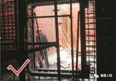 b.人防設(shè)備廠按要求安裝人防門框,支撐形成三角形(正確做法)