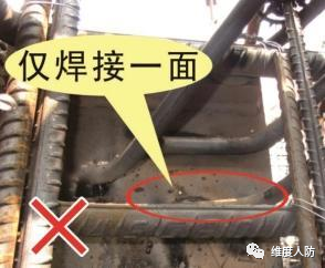 a. 鋼門框與門框墻之間應(yīng)有足夠的連接強(qiáng)度,相互連成整體;錨固鉤需雙面焊接,焊縫飽滿。(錯(cuò)誤做法):