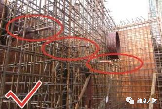 a. 未按要求在孔洞口加設(shè)加強(qiáng)鋼筋(錯(cuò)誤做法):